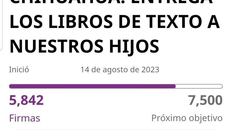 Hola, llevamos 5, 842 firmas de respaldo solicita do a la gobernadora Maru Campos la entrega de los libros de texto gratuito a las escuelas del Estado para que nuestros hijos tengan acceso a ellos. Nos ayudaría mucho que compartas esta petición democrática con tus contactos y en tus redes sociales. De ante mano gracias.