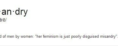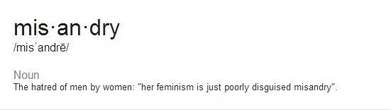 However, if anyone types "misandry definition" into Google it provides the definition "The hatred of men by women: 'her feminism is just poorly disguised misandry'". It is easy to see why this is extremely destructive to feminism.