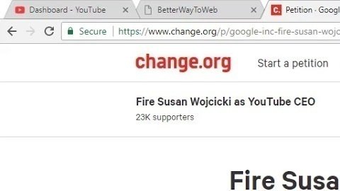Petition updateFire Susan Wojcicki as YouTube CEO#FireSusan #Petition #Update: 22,830 #Signatures! @SusanWojcicki needs to go! #MakeYouTubeGreatAgain