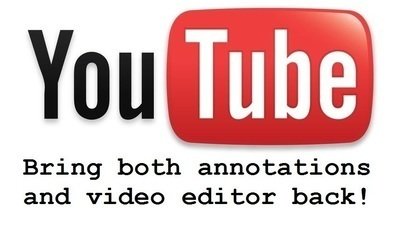 We need both annotations and video editor back because we used those before! First, I used the annotations to tell people that I've made some mistakes and also given any YouTubers some information of interesting sights. Second, I used the video editor to make my videos much longer and I can't just leave those parts or load them all in any movie makers 'cause it took me a long time to load those on YouTube. So, like I said before, we need both annotations and video editor back!