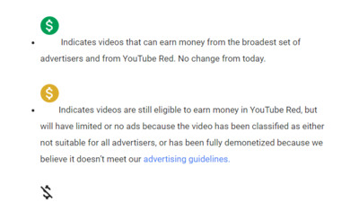 Youtube has implemented new monetization icons which automatically flags videos they deem as inappropriate. The new system automatically produces "limited or no ads" on the video.