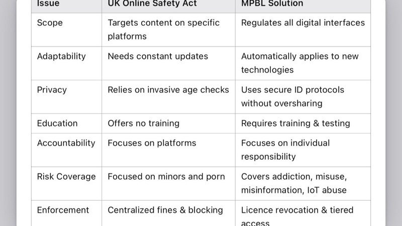 Just like with Australia’s social media ban for under-16s, the UK’s approach treats symptoms, not causes. Our petition proposes a Mandatory Personal Browsing Licence (MPBL), a universal, future-proof framework that: