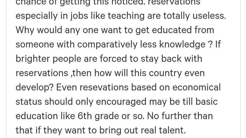 We've gotten halfway through this petition, which was unexpected. It feels great to have garnered so much support for the cause but it isn't enough to make every notable person's head turn this way. With increasing misuse of the SC/ST act by the respective strata and wanting to be invincible, it's high time reservation needed to be removed. As a law student, I regularly notice disapproval over the EWS quota from said strata, just because they think we shouldn't need to be economically respected. Afterall, how are they going to get benefited in jobs and education, on top of being well to do than most GEN category people? Time to think and act.