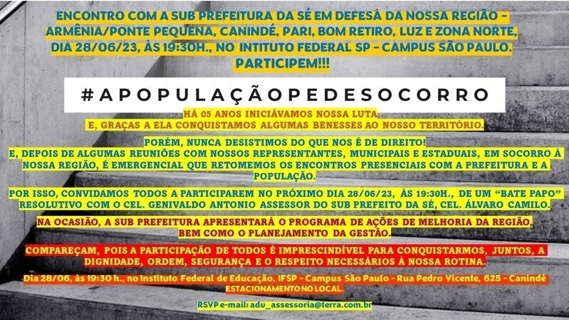 ENCONTRO COM A SUB PREFEITURA DA SÉ PELA DEFESA DA NOSSA REGIÃO - ARMÊNIA/PONTE PEQUENA, CANINDÉ, PARI, BOM RETIRO, LUZ E ZONA NORTE,