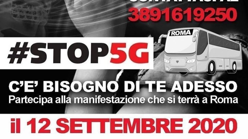 Sabato 12 Settembre 2020 a Roma in Piazza del Popolo, dalle ore 15:00 alle ore 18:00, l’Alleanza Italiana Stop 5G promuove la manifestazione nazionale Stop 5G dal titolo “Per la moratoria, la Costituzione, le libertà e l’autodeterminazione digitale” CLICCA QUI - SCOPRI I NOMI DI TUTTI I RELATORI