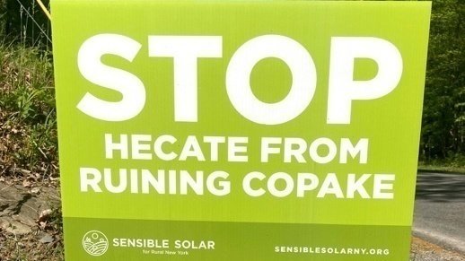 Share your opposition to Hecate Energy's proposed industrial-scale solar facility in Copake and Craryville by placing a yard sign in front of your home, farm and/or business. Also invite your neighbors and friends to stop by Random Harvest to get their yard sign as well!