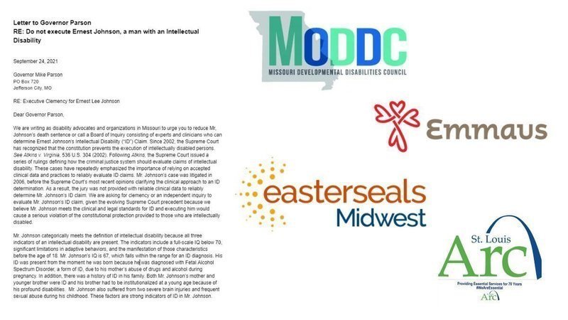 Last week, leaders of several Missouri organizations who serve people with Intellectual Disabilities submitted a letter to Governor Parson calling for clemency for Ernest Johnson and asking the Governor to call a Board of Inquiry to review the medical and clinical evidence of his Intellectual Disability claim. The letter is signed by the Missouri Developmental Disabilities Council, Easterseals Midwest, Emmaus Homes, Inc., and St. Louis ARC. The letter reads: