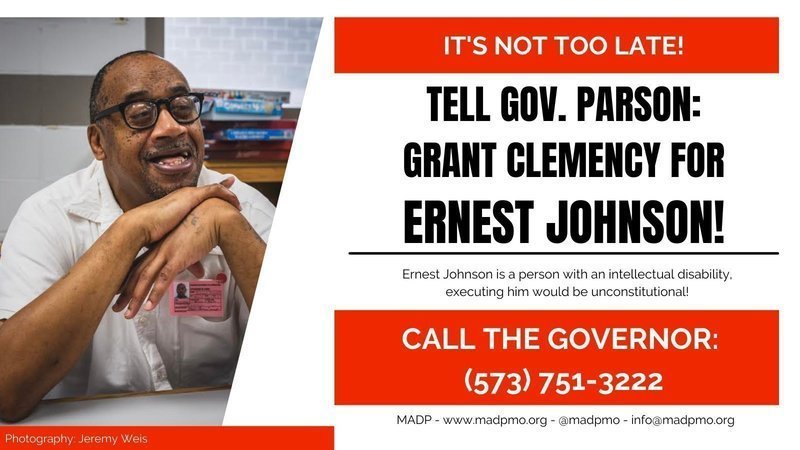 Between the hours of 8:00 am and 5:00 pm CST, we need you to call Governor Parson and ask him to grant clemency for Ernest Johnson. He has an intellectual disability and his execution will be illegal, immoral and a grave act of injustice.