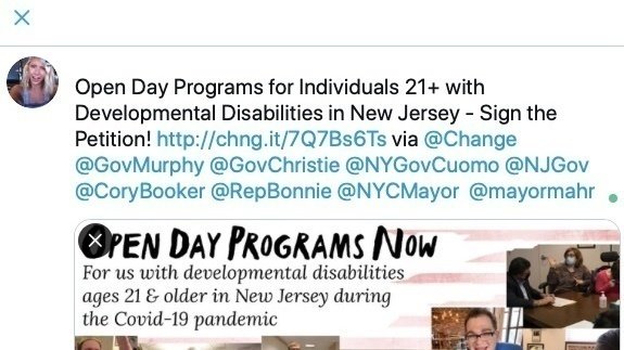 Обновление к петицииEquitable Treatment NOW for Adults 21+ with Developmental Disabilities in New JerseyTweet For Us!