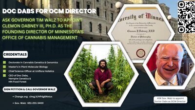 In the wake of the appointment withdrawal of Erin Dupree, a coalition of stakeholders in Minnesota’s Cannabis community are calling on Governor Tim Walz to appoint the other finalist, Clemon Dabney III, PhD to serve as the founding Director of the Office of Cannabis Management. We strongly believe that ‘Doctor Dabs' possesses the relevant Cannabis scientific and industry experience, knowledge, skills, and values which make him uniquely qualified to be the most ideal choice for this critically important position. Unlike your initial appointee, Doctor Dabney is well known and respected in the emerging legal Cannabis industry, he has established relationships with the Department of Agriculture, University of Minnesota and Native American nations in our state, and he well understands the racial injustice that has shamefully characterized prohibition here and the imperatives for leading the state’s regulatory agency with a commitment to redressing the harms of the drug war by operating the office with an equitable lens in terms of staffing, rulemaking, legislative advocacy, licensing and regulation.