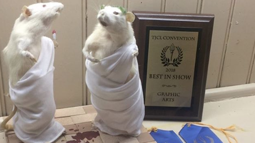 Hey, I'm Rebecca. You may know me as the creator of "The Murder of Julius Cheeser", a rat-based taxidermy piece that I entered into several of the Junior Classical League graphic art competitions. Cheeser made only the bottom ranks of his first few conventions, but eventually won first place and best in show at the 2018 TJCL State Convention. Later on, I would write an essay centered around the piece that would win the 2019 Leaky Pen Award (an honor given out each year to University School of Nashville's funniest essays). SNL's Dana Carvey presented the award to me over video message.
