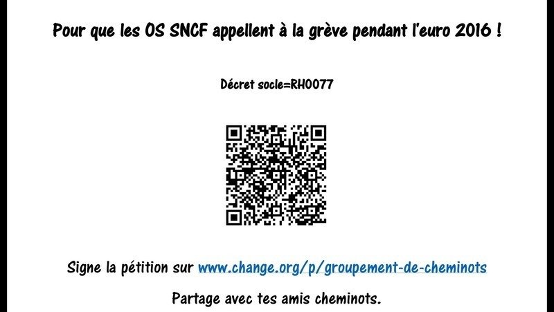 署名活動についてのお知らせPour que les OS SNCF appellent à la gréve pendant l'euro 2016! Décret socle=RH0077.Réunion accord entreprise du 4 Mai 2016.