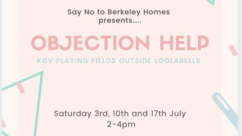 I will be at Loolabells at KGV Playing Fields KT24 tomorrow (Saturday 3rd July) between 2pm and 4pm for anyone who would like objection help or to ask any questions or to take a pre typed up objection letter away to sign and post.
