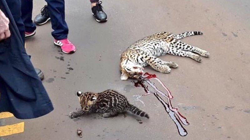 Esta vez la atropellada y muerta fue una hembra de Ocelote (Leopardus pardalis), su cría se salvó de milagro y ahora está en observación.
