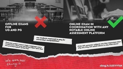 UG Semester 8 and PG students also have families just like other people and semester and we are asking that why government is putting their lives on risk over a exam. Their marks like rest of the semesters can be very well established optimumly from previous semesters average grades as well as internal. But instead my going to give exam with thousands of other students we are putting our families at risk. Nobody wants that. Think about it. Final semester students are human too.