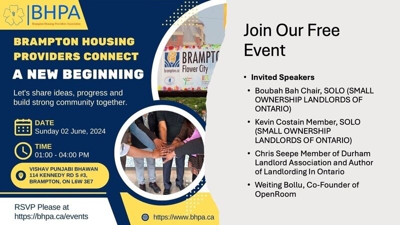 Join us for the Brampton Housing Providers Association (BHPA) Connect Event! This is a fantastic opportunity for landlords, property managers, and housing professionals to network, share insights, and learn about the latest in housing advocacy and support.