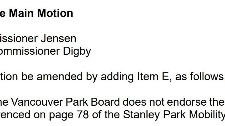 On September 15, 2025, at the Vancouver Park Board Committee meeting, the Board unanimously approved an amendment moved by Commissioner Jensen rejecting the portion of the Stanley Park Mobility Study which proposed two parking garages up to six stories high.