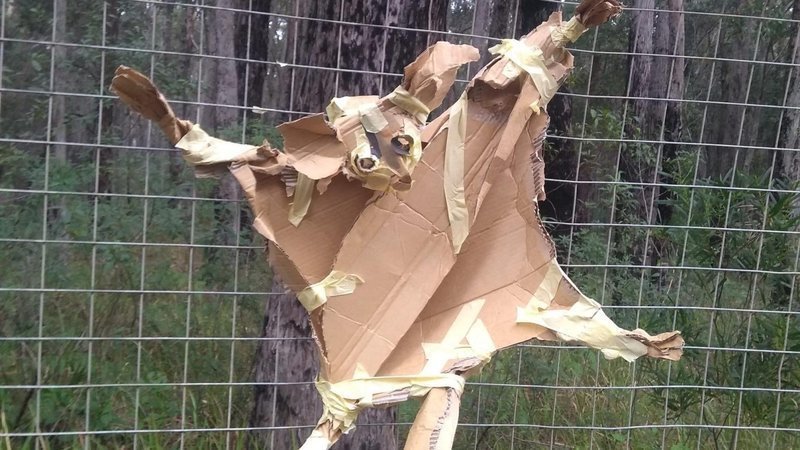 A fluffy, life size wombat is woven from chicken wire and twine. Owl, cockatoo and bandicoot cut-outs perch on a pink, cardboard box tower block. Sculpted ceramic fungus ‘grows’ on a pile of blackened logs. The artworks on show at Occupy the Fence in Manyana this weekend were as colourful and quirky as they were powerful.