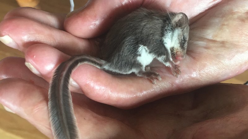 Wildlife carer, June Frew with rescued Adult male Feathertail Glider at Manyana. Aka Pygmy Glider, The Earths smallest Glider. He's alive and sleeping after a big drink of sweet water. One of the many species reliant on this unburnt habitat at Manyana. Much of their population wiped out in the NSW Black Summer fires.