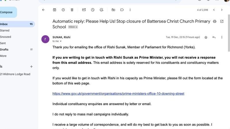 Just a quick update to let you know , I contacted via email our Prime minister and Wandsworth councillors requesting an immediate intervention to stop the closure of Christ Church Primary School Battersea.