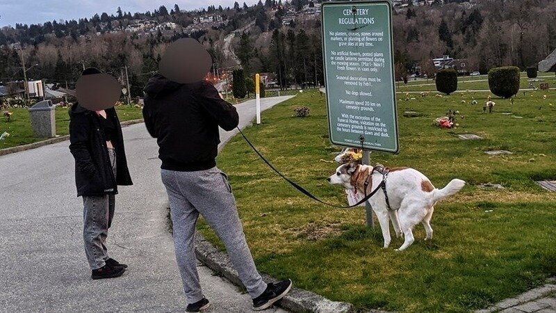 Article on a cemetery where dogs are banned but still use the space: