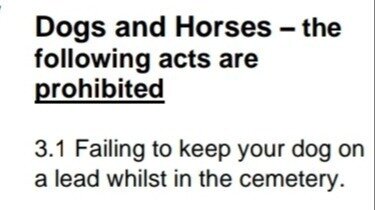 3.1 Failing to keep your dog on a lead whilst in the cemetery.