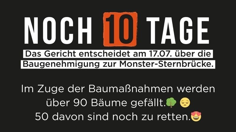Das Oberverwaltungsgericht Hamburg entscheidet am 17.7. über die Fehlplanung an der Sternbrücke. Öffentliche Verhandlung ab 10 Uhr. Kundgebung um 9 Uhr. In der Woche ab 14.7. werden zwei weitere Klagen gegen die Monsterbrücke vor dem OVG verhandelt. Das wird eine spannende Woche!