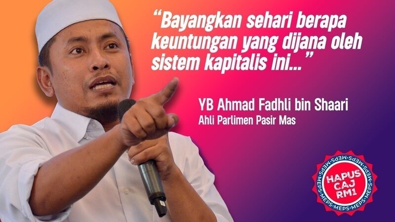 Translation: “There is no longer any necessity to impose this RM1 fee on Malaysians.” - “Bayangkan sehari berapa keuntungan yang dijana oleh sistem kapitalis ini…”
