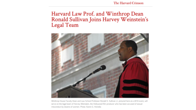 Acting as a defense attorney in a sexual assault case is fundamentally incompatible with being the Faculty Dean of a residential House at Harvard. What kind of message is sent to sexual-assault survivors, other House residents, and the Harvard community at large when the head of a House makes excuses for attackers, blames survivors, and suggests that survivors are not to be believed? Even if Sullivan were to resign now as defense attorney for Weinstein, he has already shown that he lacks an understanding of the position of Faculty Dean of a House. His actions and statements to date have irrevocably tainted his moral authority and his standing in the community, and he can no longer fulfill the responsibilities of a Faculty Dean. The Harvard Crimson has published an undergraduate’s op-ed that describes how it feels to be a sexual-assault survivor assigned to live in Winthrop House.