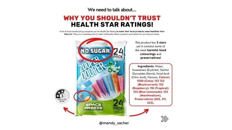 - Which misleading Health Star Ratings I’ll be exposing next (you’ll be shocked at some of the products receiving 4 stars - tune in as this will be aired on TV).