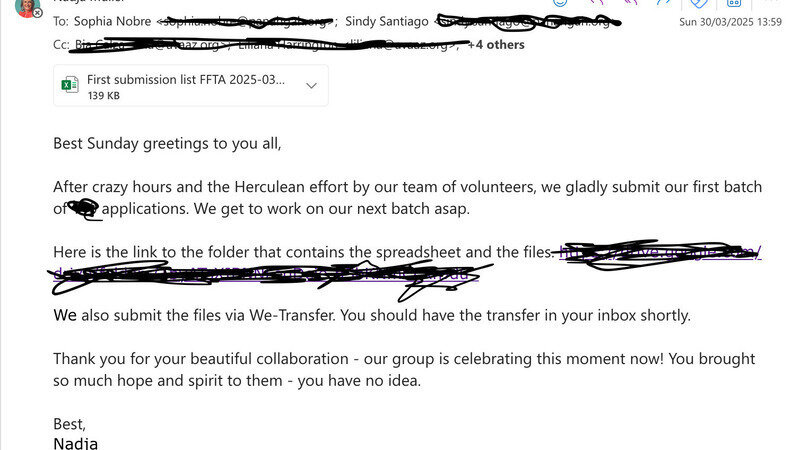 🌱 The financial update: Thanks to your generosity and the incredible support of Avaaz, we have secured a total of USD 137,434, including a USD 125,000 grant from Avaaz. This is enough to support the full submission of these super vulnerable cases and get them one step closer to safety.