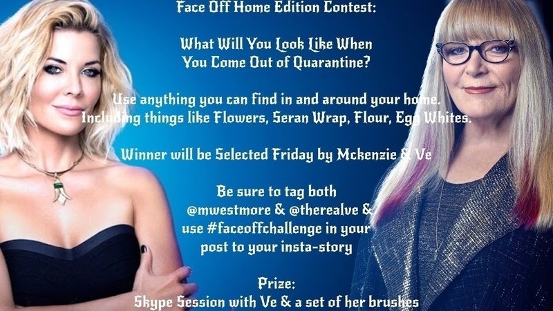 Yesterday on Instagram Live McKenzie had the idea of having a Face Off Home Edition Challenge with hopes of doing it every Monday to have some more fun in Quarantine. In case you missed her announcement I posted a photo below With the information. I tried adding the video but this website wouldn’t let me. Anyone can enter from anywhere. So now is your chance to be a contestant on Face Off, well the home edition �Ve and McKenzie will be judging and the winner will be announced on Friday afternoon in a Instagram Live. The lucky winner gets to have a 30 Min Skype with the one and only Ms Ve Neil plus she is giving the winner a set of her brushes. Now start working on your entry of How You Will Look When you come out of Quarantine. Will you be scary? Will you be Beautiful? How will you look? Be sure to post your pictures on your Instagram Story and tag both McKenzie and Ve in your post with the hashtag #faceoffchallenge