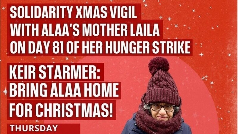 On Thursday, Alaa’s mother Laila will enter the 81st day of her hunger strike to #FreeAlaa. Having lost over 22kg, Laila’s body is now entering a dangerous new stage, only days before politicians are due to disappear for their Christmas break.