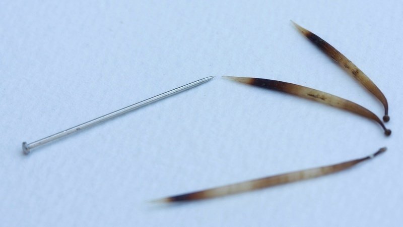 You will see in the photo - how sharp the spines are compared with a pin - but also see how they are shaped. The bulb that is embedded in the skin, the narrow neck thickening, the slight curve - all crucial. That narrowing and curving is all to do with the shock absorbing nature of the spines. If they were like pins - a hedgehog falling would become self-impaled.