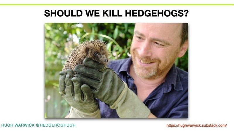 Then I had a trip down to Devon to lecture in Chulmleigh - thank you to Nick and Claire Withers for putting me up. It was supposed to be a talk about my book, Cull of the Wild - so I began with the provocative first slide you see here. I found out that they had craftily advertised the talk as about hedgehogs and conservation - leaving out the bit about killing!! So there were some quite concerned faces as I started!