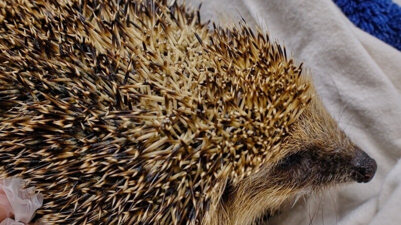 The hedgehog, for example, really did have a close shave - as the patch of spines cut short on the top of its head clearly show. The reasons it remains in care is because there is also a bunch of tar-like paint sticking spines together and reaching down to the skin. This is being painstakingly and carefully removed.
