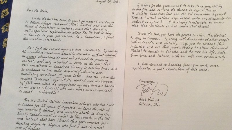 Under the law, you have the power to allow Mr. Harkat to stay in Canada. I, along with thousands of other people both in Canada and globally, urge you to use this power today to allow Mohamed Harkat to remain in Canada and live his life, safe from fear and torture, with his wife and community.