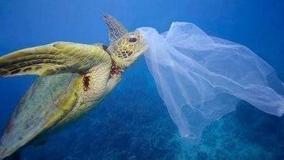 Plastic bags do not degrade in the marine environment. Plastic bags photo-degrade, meaning they break down into smaller and smaller bits of plastic but never completely go away. Marine animals, such as turtles, and seabirds - even some fish see these micro plastic particles floating in the water and think that it’s food. Plastic cannot be digested; thus the plastic blocks the digestive track and the turtle or bird dies from starvation because their food can’t be digested. It is estimated that over 267 species of seabirds have plastic in their bodies. Numerous studies have proven this fact.