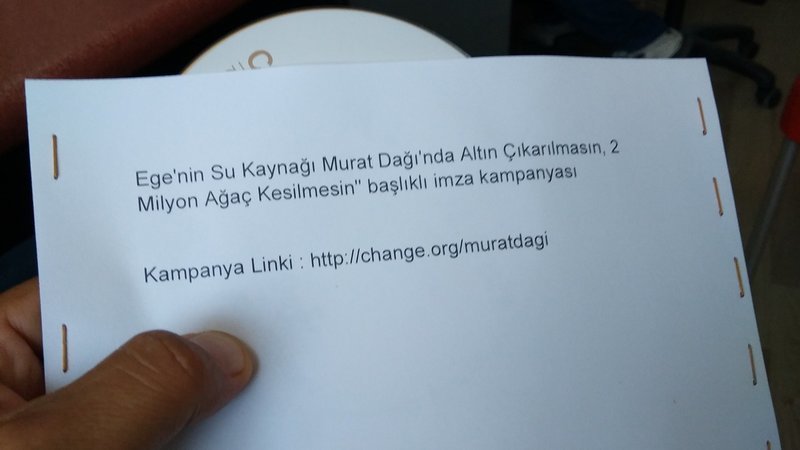 8 Haziran'da başlatmış olduğumuz "2 Milyon Ağaç kesilmesin MURAT DAĞI YOK OLMASIN" başlıklı imzalarımızın çıktıları ve CD kaydını Kütahya Barosu Başkanı Müdahil avukat Ali İhsan Bakır aracılığı ile zabıt kaydına aldırdık ve ÇED İPTALİ İÇİN, imzalarınız ile önemli bir destek sağlamış oldunuz.