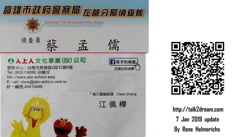 在2018年3月,江佩樺女士告訴台南警方,我在破壞她的聲譽。由於她開始刑事訴訟,江佩樺女士在2018年5月4日的調解中並未合法地代表人上人教育事業集團芝麻街凱仕蘭(Kidsland_Sesame_Street)。