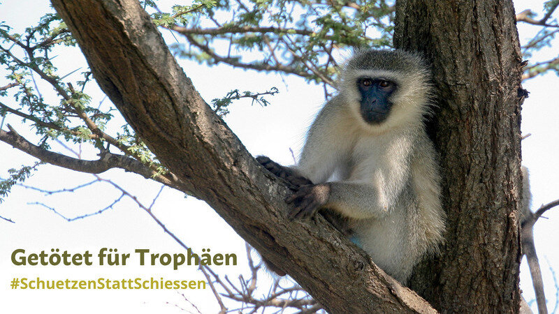 Die Importzahlen offenbaren das erschreckende Ausmaß: Mehr als 5.500 Trophäen von Affen, insbesondere Meerkatzen und Paviane, wurden zwischen 2017 und 2021 weltweit registriert. Allein 800 dieser Affentrophäen gehen auf das Konto deutscher Jäger*innen. Häufig können Affen bereits für 50 bis 100 Euro bejagt werden oder sie sind Teil sogenannter Jagdpakete, die als günstige Pauschal-Lockangebote den Abschuss verschiedener Tierarten umfassen.