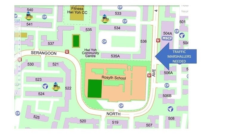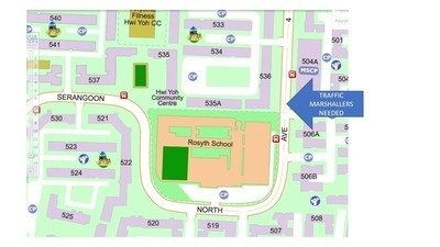 On 26 April 2023, one of our Rosyth students was knocked down by a car at the traffic light next to the school. We need traffic marshals stationed to prevent such incidents from happening again.