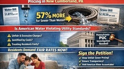 Residents in New Cumberland, PA are being charged disproportionately high sewer rates by American Water, raising serious concerns about fairness, transparency, and regulatory compliance.