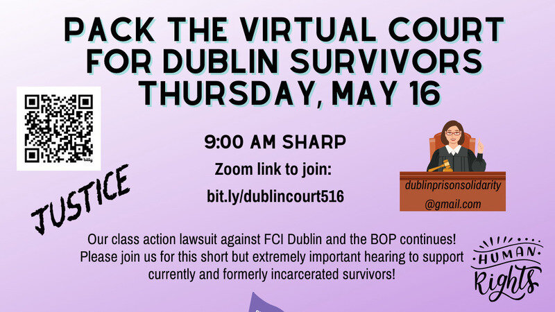 Petition updateHold BOP Accountable for FCI Dublin Human Rights Violations!PACK THE VIRTUAL COURT MAY 16TH 9 AM FOR DUBLIN SURVIVORS