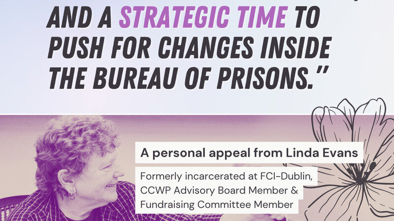 I'm writing to ask for your financial support for CCWP’s critical work advocating for survivors of sexual abuse at FCI Dublin. CCWP is one of the founding members of the Dublin Prison Solidarity Coalition (DPSC), formed to seek justice for survivors of the rampant sexual assault and sexual abuse from prison guards, a warden, and even a chaplain inside FCI-Dublin.