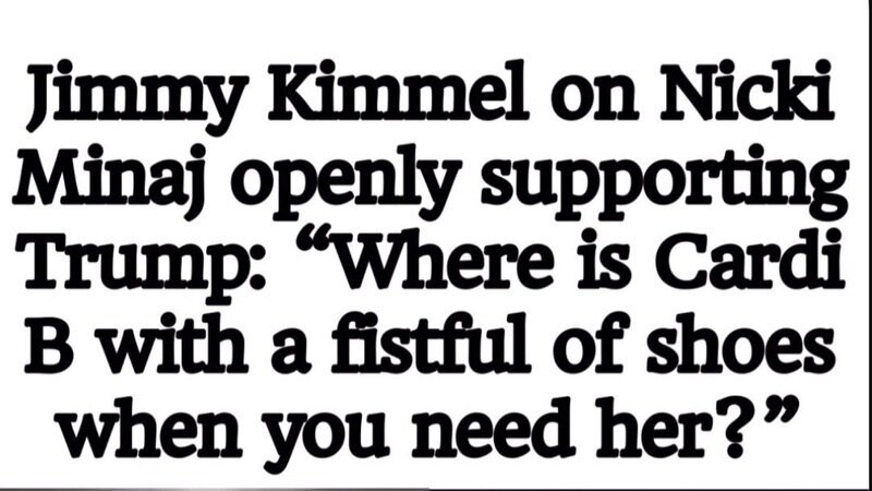 On a recent episode of his television program, Jimmy Kimmel made comments referencing political disagreements involving Nicki Minaj and stated words to the effect of “where is Cardi B with a shoe.” Many viewers interpreted this statement as encouraging or joking about physical assault against a Black woman for expressing her political views.