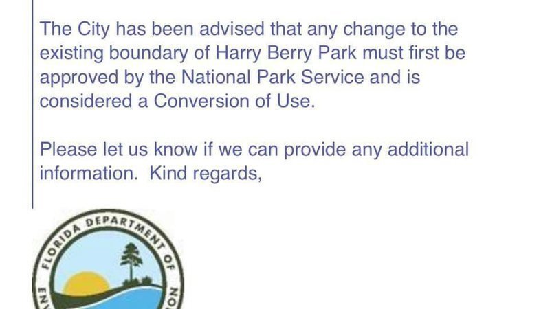 In short, no changes to Harry Berry Park can be made without approval from the National Park Service because it’s considered a Conversion of Use. Even if the City and the developer feel they are good changes, they can't change the boundaries, change the interior of the park, or convert any part of it without the application and approval process.