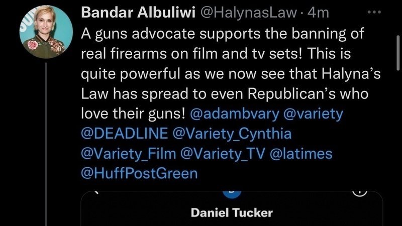 A guns advocate supports the ban of real firearms on set. This is big news, as I was quite scared of what the right would think of this law. This just goes to show, Halyna’s Law doesn’t play favorites to politics — it’s a national (and soon to be international) issue !