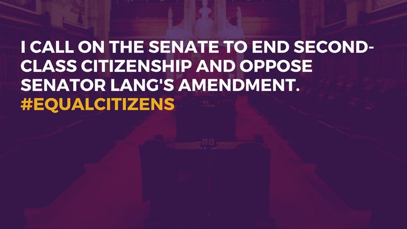 On Tuesday, the Senate will consider a new amendment proposed by Senator Lang, which would ensure that millions of Canadians are treated as second-class citizens under the law.