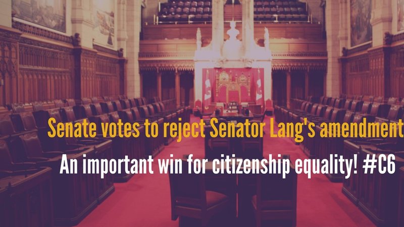 Petition updateDon't leave millions of us as second class Canadian citizensUPDATE: We did it! Senator Lang's amendment has been defeated!